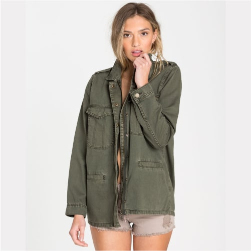 Untuk lebih jelasnya, kamu dapat melihat contoh jaket dengan nuansa army untuk menunjang gaya feminim seperti berikut ini.